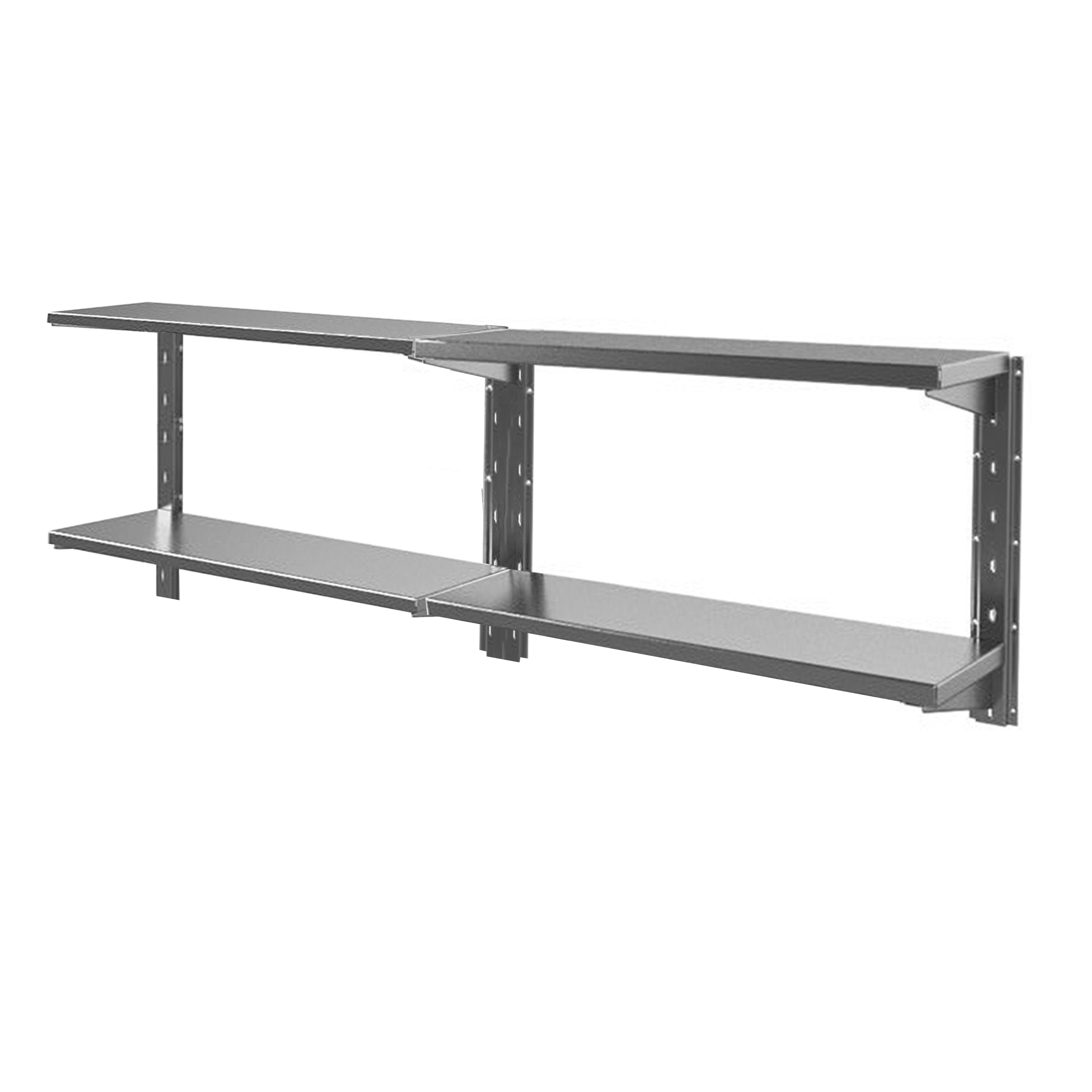 1-уровневая полка Финист настенная на кронштейнах, крепится к стене анкерными болтами или подобным способом. На планках имеются пазы для регулировки высоты установки полок.
