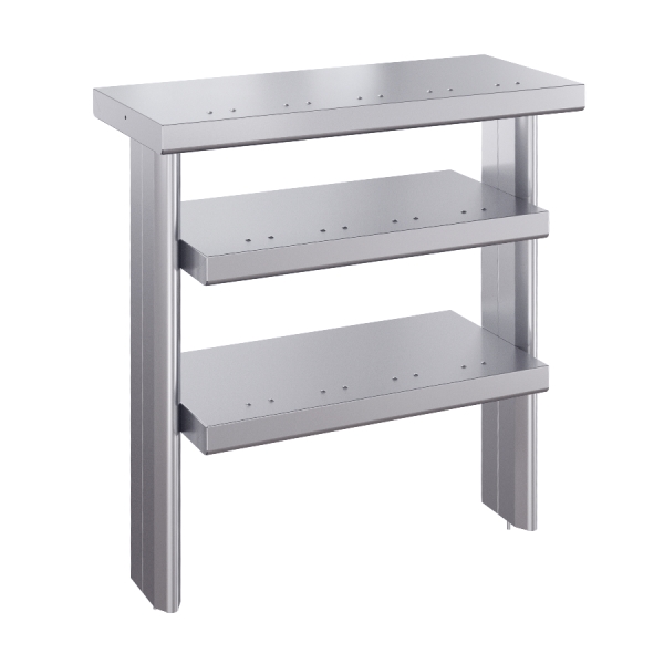 Полка трехъярусная Атеси Ривьера П-3.755-02 – специализированное оборудование, предназначенное для оснащения линий раздач в профессиональных заведениях общественного питания и торговли. На этой полке можно располагать первые и вторые блюда, кондитерские изделия, холодные и горячие закуски, напитки и столовые приборы.