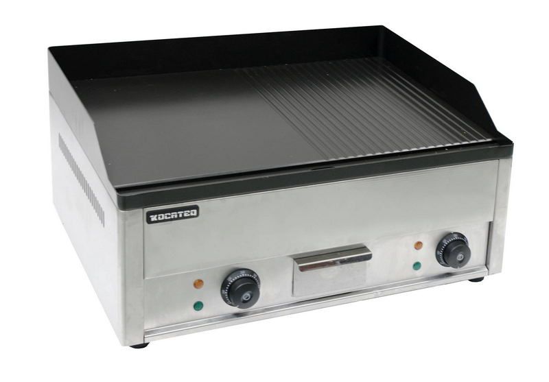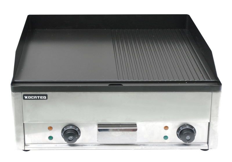 Kocateq GH600HRNWпредставляет собой жарочную поверхность, предназначенную для жарки мяса, овощей, рыбы, приготовления оладий, котлет, гамбургеров. Оборудование может применяться для оснащения пунктов общественного питания, торговых точек. В модели используется термостат для регулировки температуры, защитный термостат с функцией автоматического отключения напряжения при повреждении основного термостата. Рабочая панель выполнена из стали толщиной 10 мм с тефлоновым покрытием. В конструкции предусмотрено две зоны нагрева (гладкая и рифленая). Корпус выполнен из нержавеющей стали марки AISI430 толщиной 0,8 мм. Ножки выполнены из пластика.
