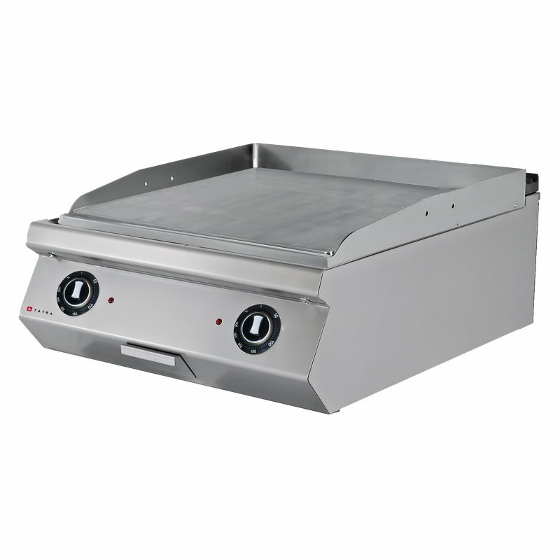 Tatra 700 серии TET.87S– жарочная поверхность, предназначенная для приготовления мяса, овощей, рыбы, а также быстрого подогрева полуфабрикатов. Аппарат отлично подходит для оснащения пунктов общественного питания, торговых точек. На корпусе установлена электромеханическая панель, оснащенная термостатом, 2 независимые зоны нагрева с возможностью отдельной регулировки. Корпус произведен из нержавеющей стали.