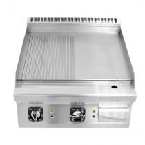 Поверхность жарочная электрическая Kocateq MCEG 87SR с 2 зонами нагрева плоская/ребристая, линия 700 – оборудование для приготовления разнообразных блюд. Уникальная конструкция включает в себя наполовину плоскую, наполовину ребристую жарочную поверхность, обеспечивая возможность выбора между обжариванием на гладкой поверхности или приданию пикантного рифленого следа. Жарочная поверхность изготовлена из легированной высокоуглеродистой стали, что обеспечивает превосходную теплопроводность и равномерное распределение тепла, гарантируя идеальное приготовление пищи. Корпус гриль-сковороды выполнен из нержавеющей стали, гарантирующей устойчивость к коррозии. Это также облегчает процесс очистки и обслуживания. Механический термостат позволяет регулировать температуру от 50 до 300°С. Устанавливается на регулируемых по высоте ножках – так можно легко настроить высоту устройства в соответствии с индивидуальными потребностями и предпочтениями.