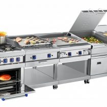 Abat ГАКО-90/1П-С-02 – газовая рабочая поверхность, предназначенная для приготовления широкого спектра блюд. В конструкции предусмотрена одна рабочая зона и две горелки. Рифленая поверхность позволяет готовить различные блюда, оставляя на поверхности продукта аппетитные пригаринки. Оборудование установлено на напольную подставку с открытой полкой из нержавеющей стали. Опорные ножки регулируются по высоте.