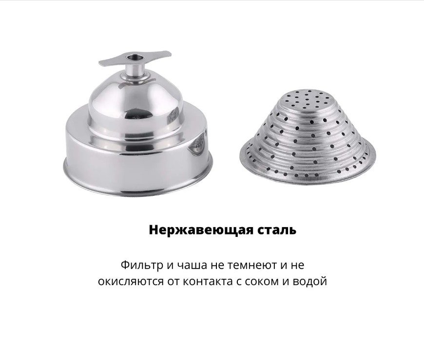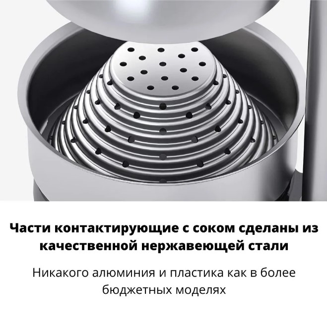 - Части, контактирующие с соком, сделаны из качественной нержавеющей стали;