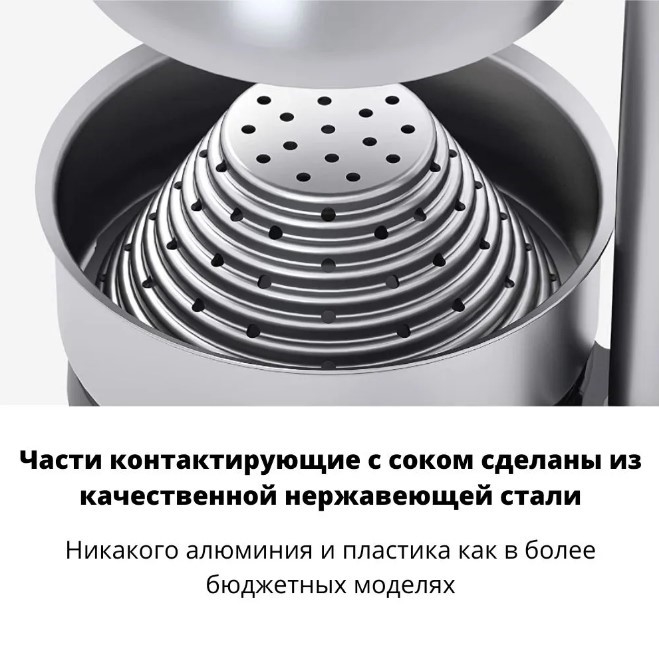 • Части, контактирующие с соком, сделаны из качественной нержавеющей стали;