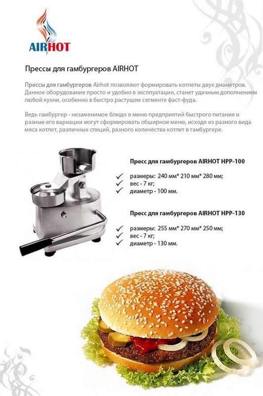 Пресс для гамбургера AIRHOT HPP-100 купить с гарантией в Москве по низкой цене с доставкой по России у официального дилера. Возможность покупки в кредит