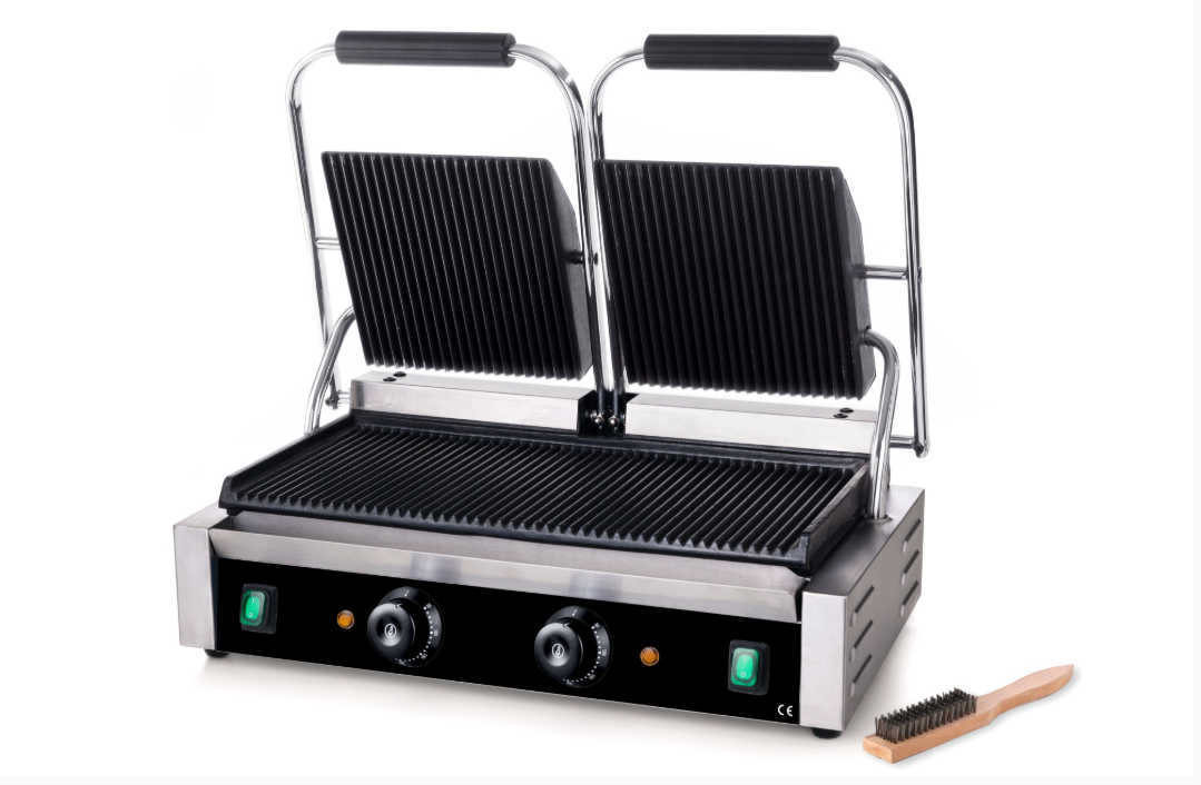 Пресс-гриль GastroragNPL-EGD20Eотносится к разряду профессионального оборудования, которое активно используется предприятими общепита и кейтеринговыми копаниями. Подходит для приготовления сэндвичей, тостов, панини, шавермы и прочих блюд фаст-фуда. Идеально обжаривает мясо, рыбу и овощи, оставляя на продуктах красивый полосатый рисунок. Корпус сделан из нержавеющей стали, рабочие поверхности – из чугуна с антипригарным покрытием. Максимальная температура разогрева – до 300°С.