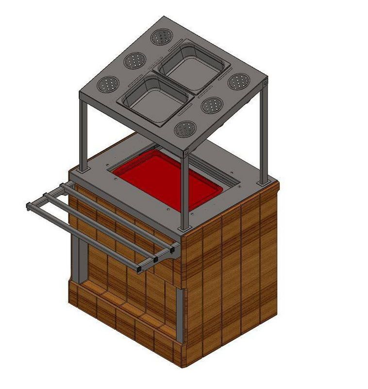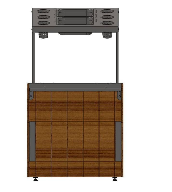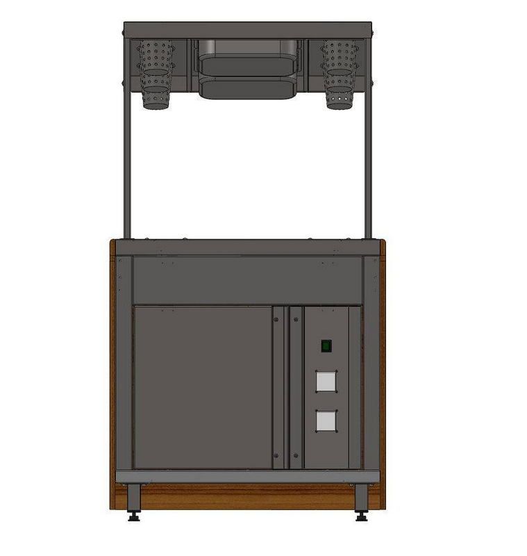 - Со стороны персонала в диспенсере есть ниша для инвентаря. Как дополнительная опция ниша может быть снабжена створчатой дверкой;