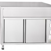 Конструкция создана из высококачественной нержавеющей стали. Прилавок оснащается ножками, которые могут регулироваться по высоте.