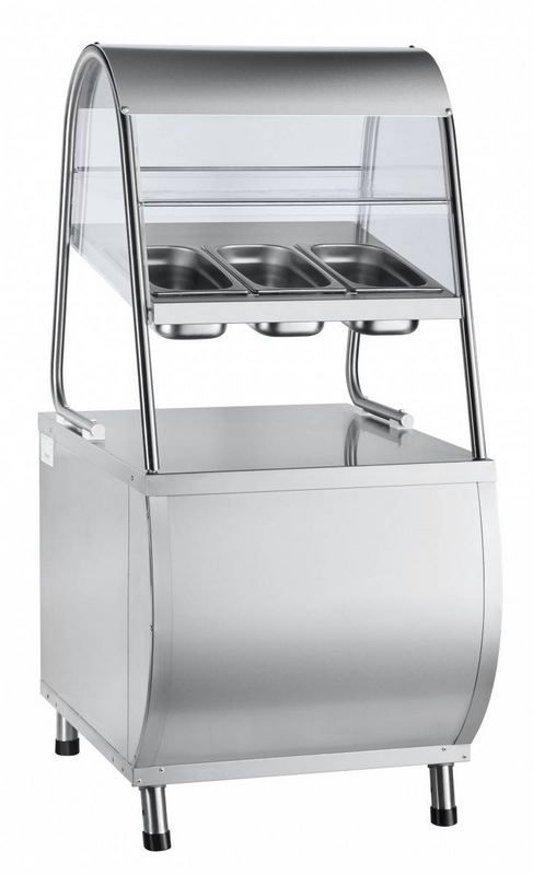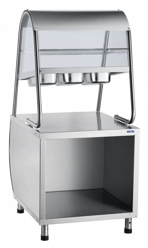 Оснащён 3 ёмкостями GN 1/3 для вилок, ложек и ножей, закрытым лотком для нарезанного хлеба и большим отсеком для подносов и другого кухонного инвентаря. Имеет регулируемые по высоте ножки. Оборудование может использоваться как отдельно, так и в составе линий раздачи.