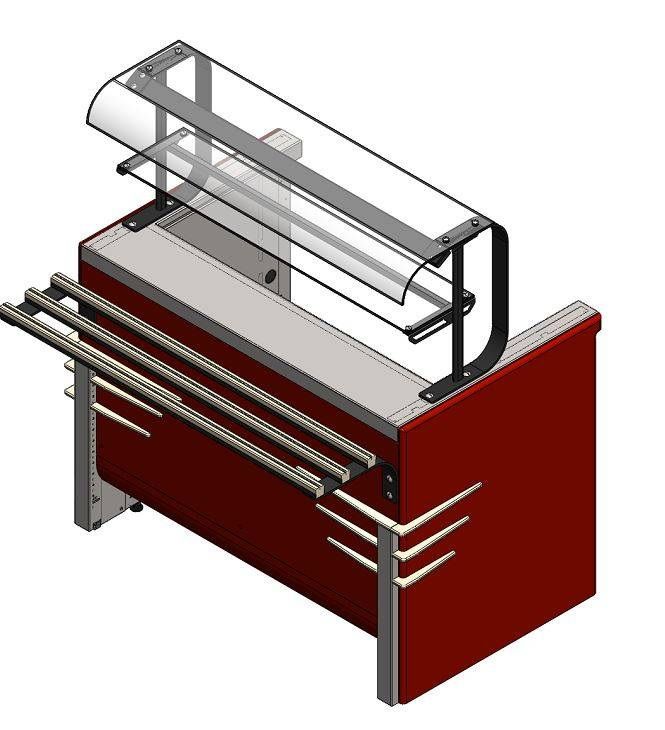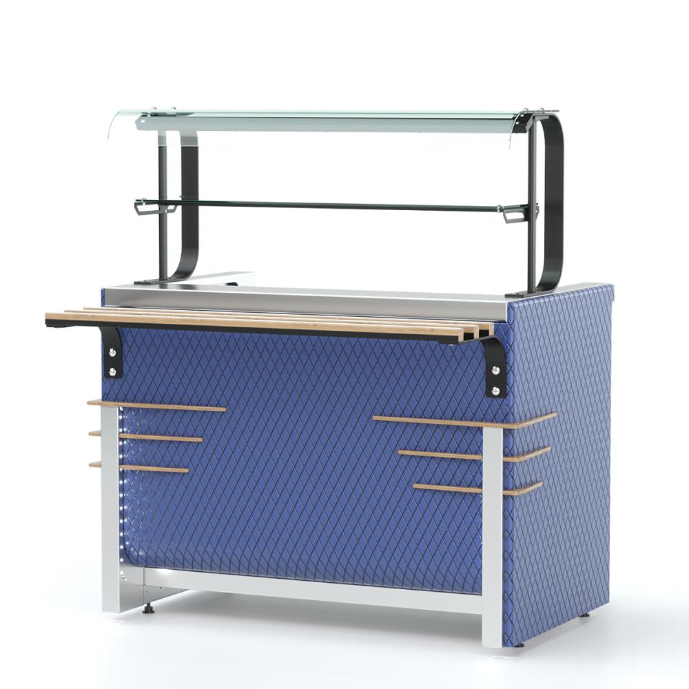 - Прилавок оснащен стеклянными полками;