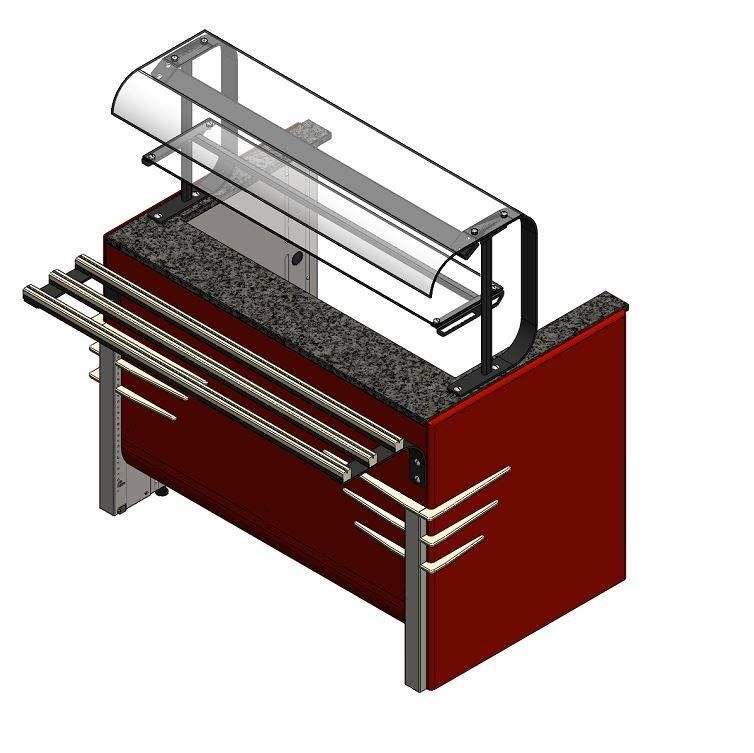 • Прилавок нейтральный Refettorio Case RV12AS П-образный 1105x700x1290(830) мм;