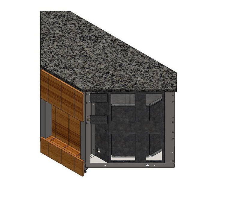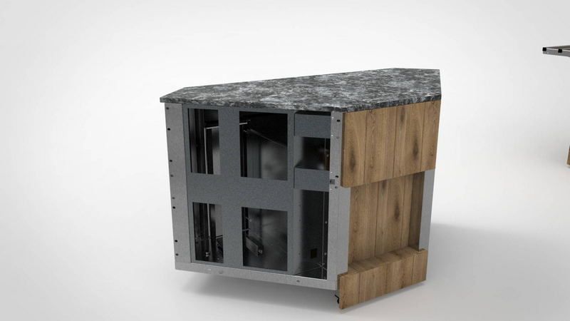 • Со стороны персонала в прилавке есть ниша для инвентаря и розетки с защитной крышкой. Как дополнительная опция ниша может быть снабжена створчатой дверкой;