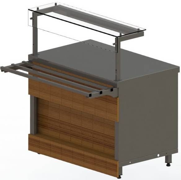 - Со стороны персонала в прилавке есть ниша для инвентаря и розетки с защитной крышкой. Как дополнительная опция ниша может быть снабжена створчатой дверкой;