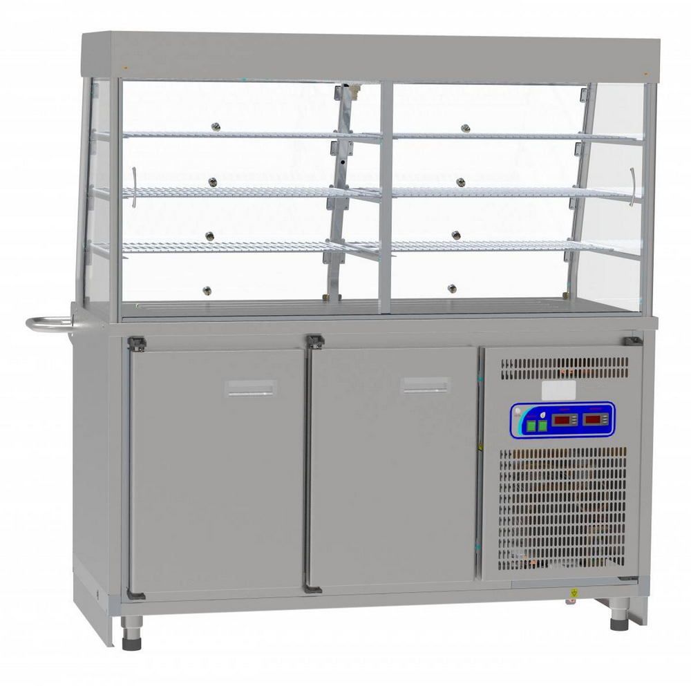 Прилавок-витрина холодильныйAbat ПВВ(Н)-70Х-С-01-ОКпредназначена для охлаждения, кратковременного хранения и демонстрации напитков и готовых блюд на предприятиях общественного питания и торговли. Оснащена витриной с 3 рядами полок-решёток, столешницей и камерой с двумя распашными дверцами (витрина, столешница и камера охлаждаемые). Имеет регулируемые по высоте ножки, которые с лицевой стороны закрываются цоколем.
