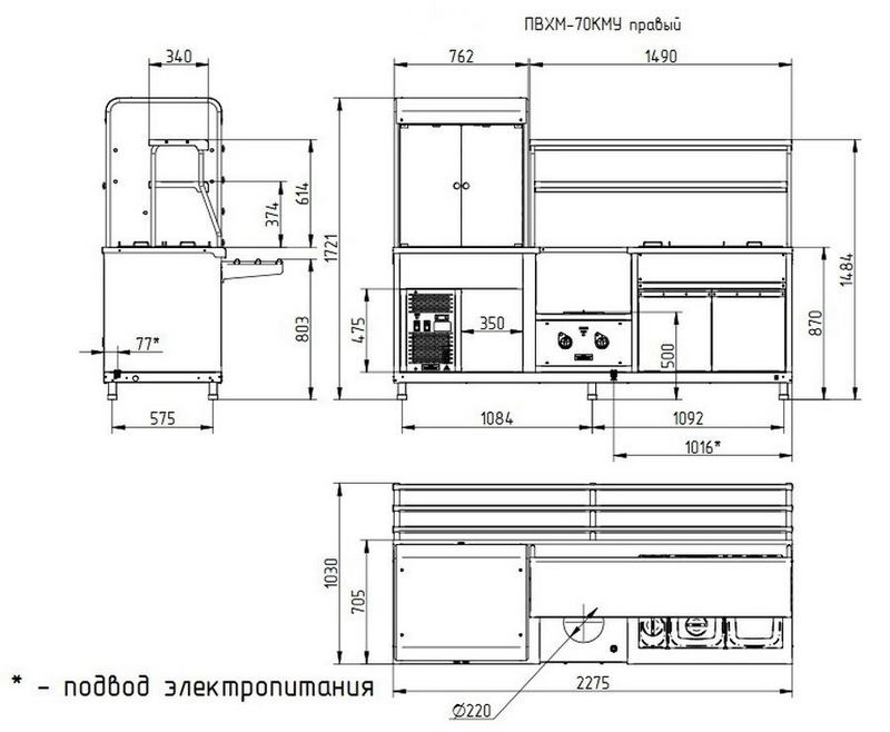 Прилавок-витрина холодильный мармитный универсальный ПВХМ-70КМУ кашир. витрина справа купить с гарантией в Москве по низкой цене с доставкой по России у официального дилера. Возможность покупки в кредит