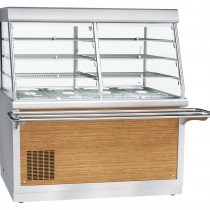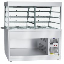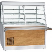 Панели и корпус изготовлены из высокопрочной нержавеющей стали. Эта модель оснащается 3-мя вместительными полками и одной охлаждаемой ванной, куда устанавливаются гастроемкости.