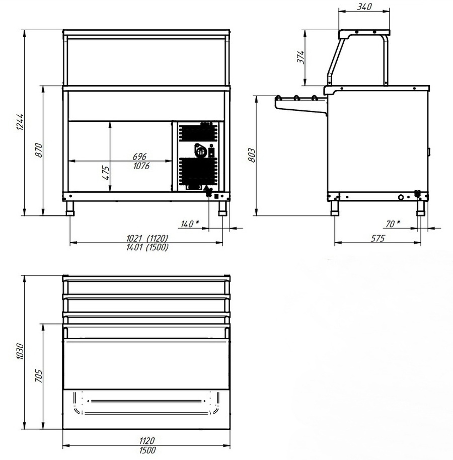 Прилавок холодильный Abat ПВВ(Н)-70КМ-02-НШ столешница нерж.