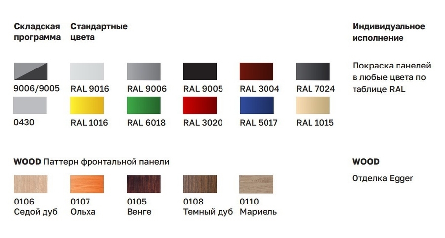 - Предусмотрена возможность внешней отделки и покраски панелей по таблице RAL