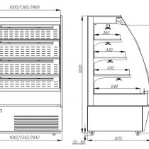 Пристенная холодильная витрина Carboma 1600/875 ВХСп сочетает в себе небольшие размеры и увеличенную выкладку и идеально подходит для промо-акций. В комплект входит: энергосберегающая ночная шторка, сменные декоративные панели из нерж. стали, три навесные полки, верхняя светодиодная подсветка.
