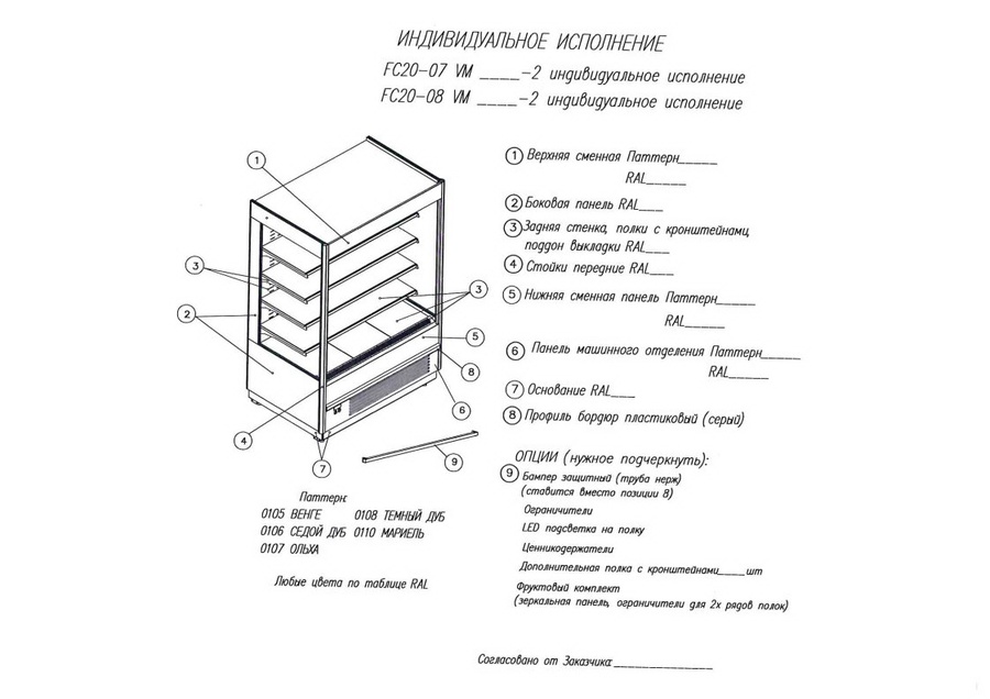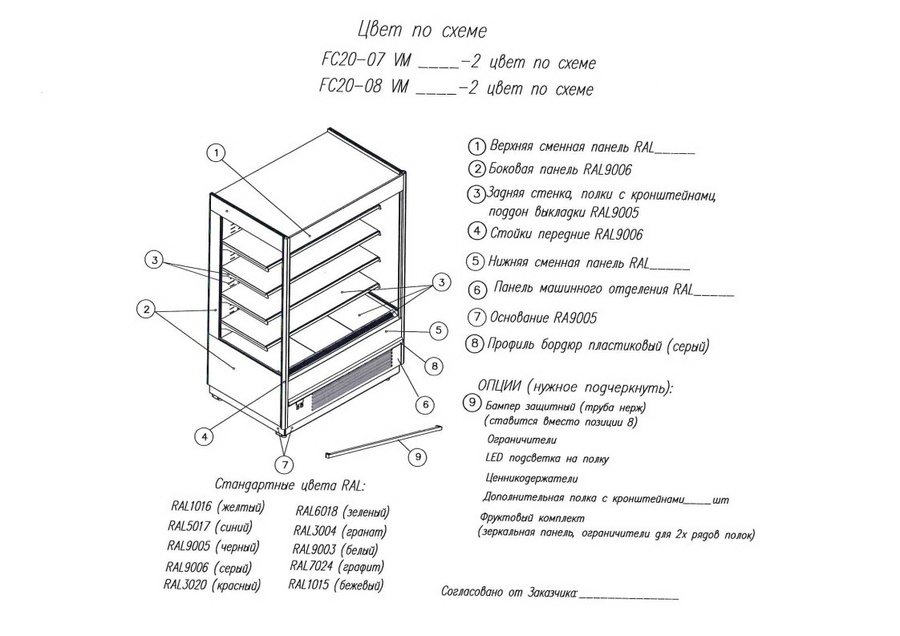 Стандартная комплектация пристенной витрины Carboma Cube: