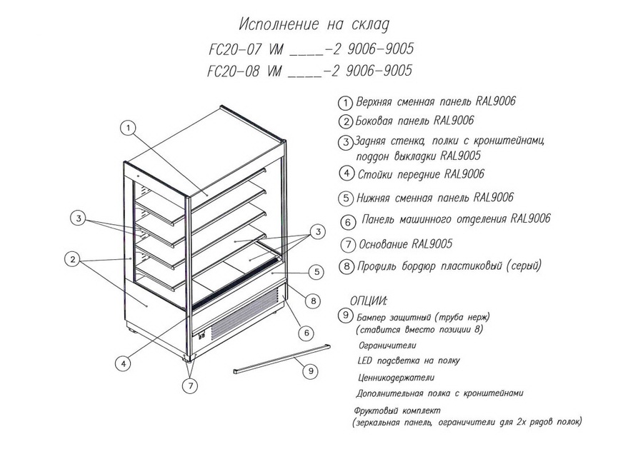 - фруктовый комплект (зеркальная панель, ограничитель для двух рядов полок)