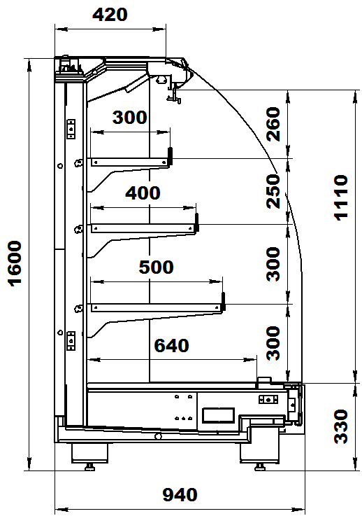 Стандартная комплектация гастрономической холодильной горки Варшава 160/94: