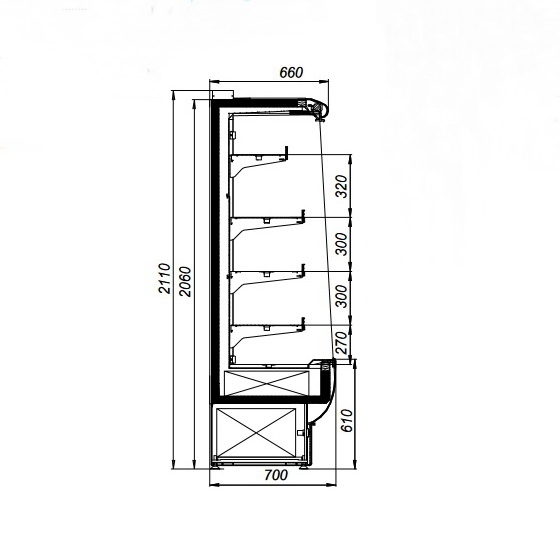 | Глубина выкладки | 1х300, 3х400 + 440 мм |