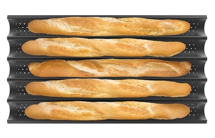 - противопригарное покрытие из тефлона, пять каналов для выкладки заготовок под багеты;