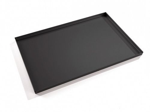 Противень изготовлен из алюминия и покрыт слоем тефлона. Он обладает прямоугольной формой с набольшими бортиками и имеет гладкую поверхность.