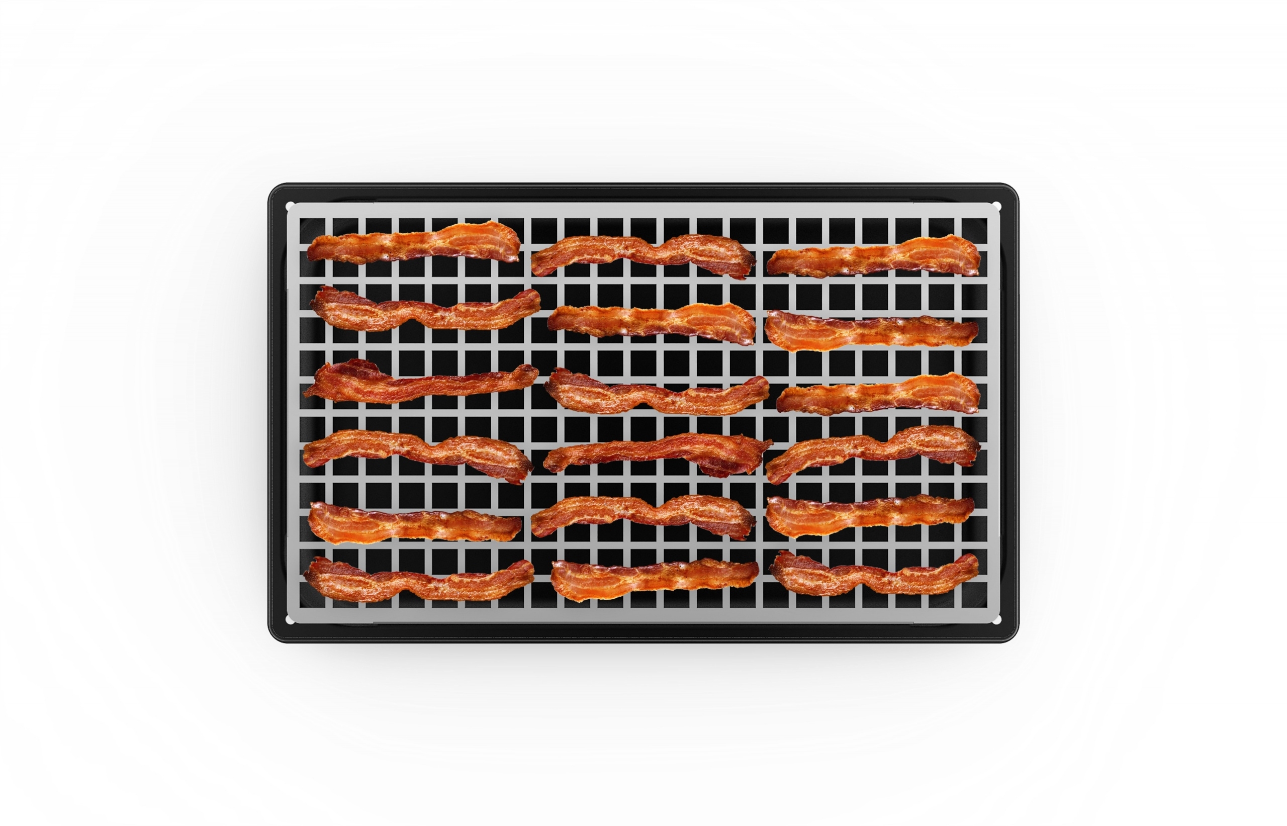 Идеально для: бекона — колбасок — жарки мяса — цыпленка табака.
