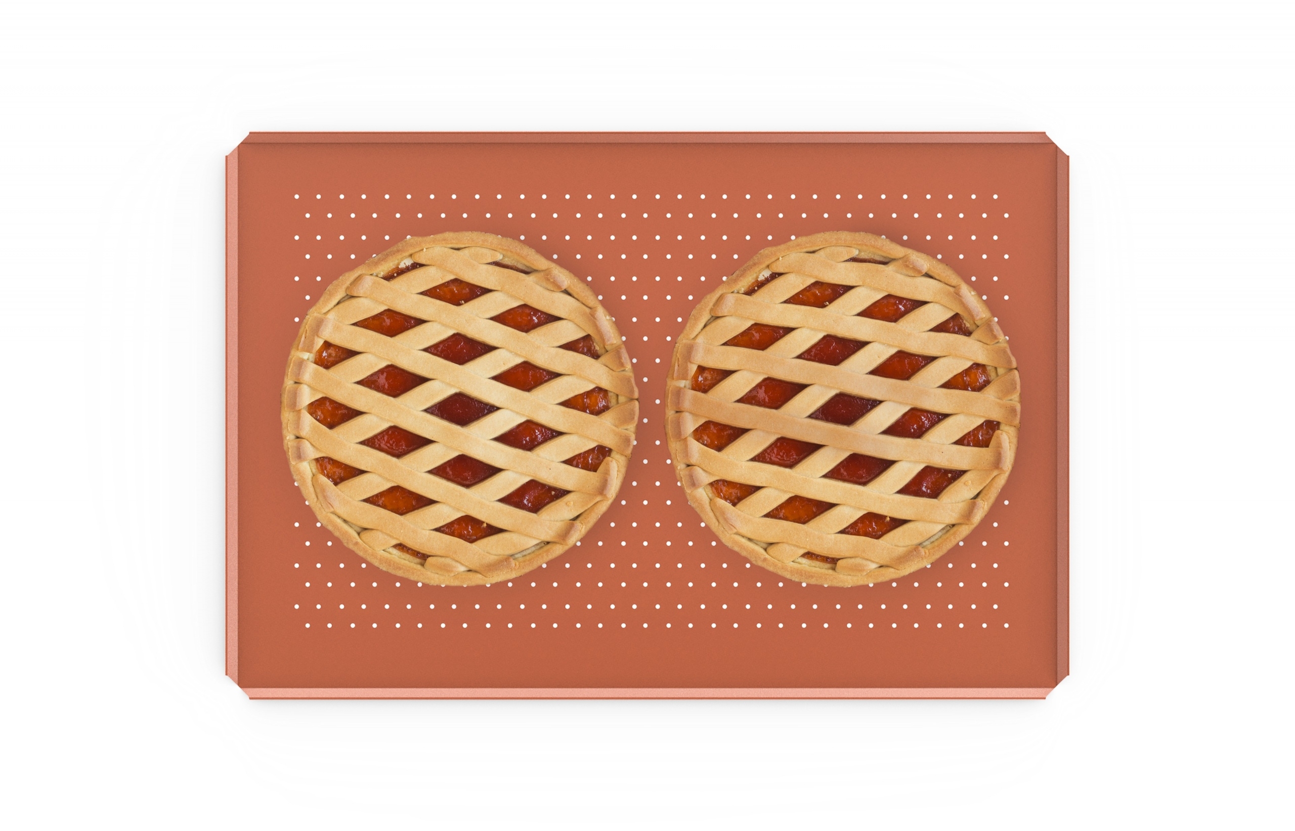 Алюминиевый перфорированный противень с тонким силиконовым покрытием для кондитерских и хлебобулочных изделий.