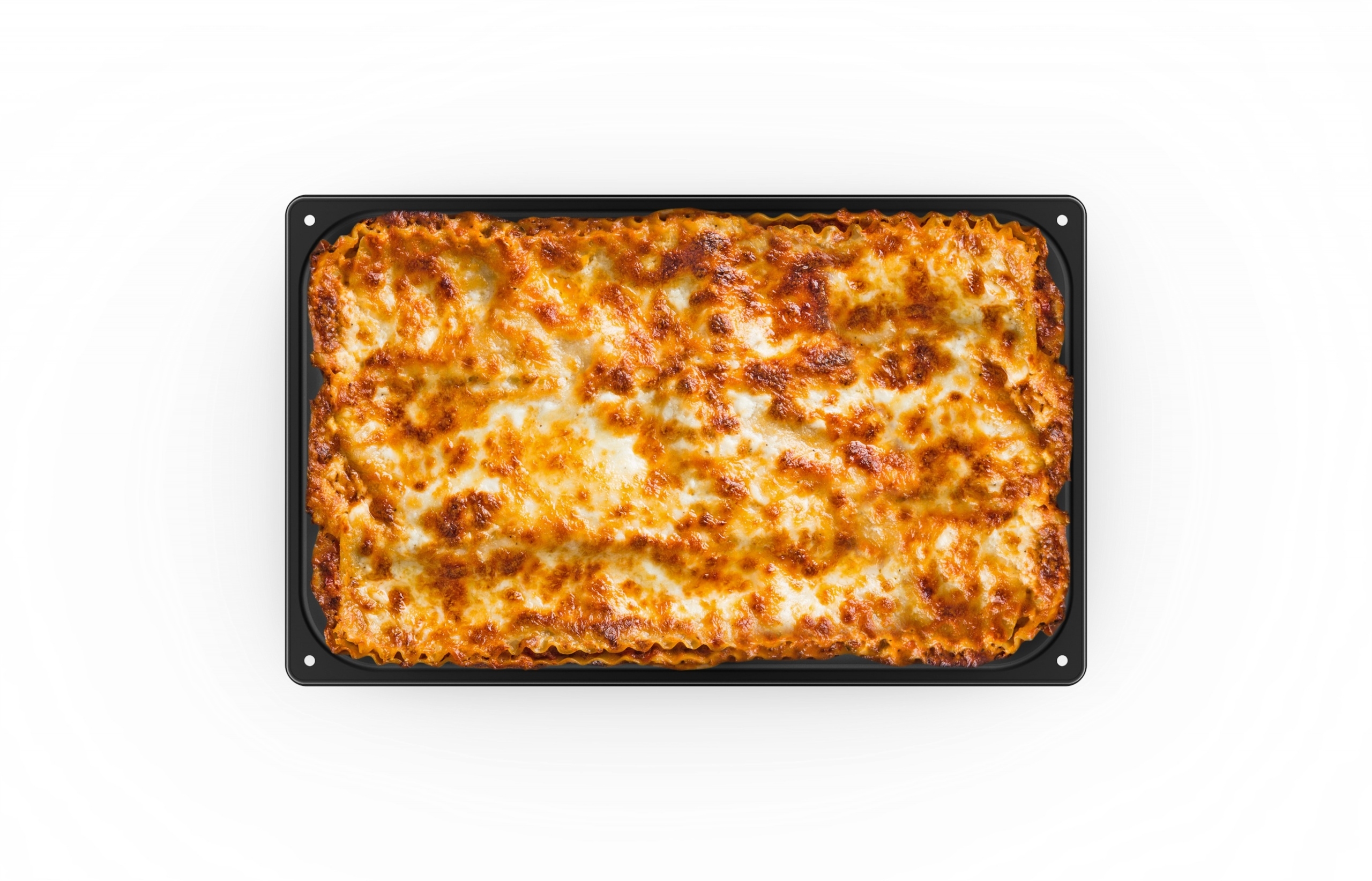 Стальной противень с антипригарным покрытием и высотой стенок 40 мм.