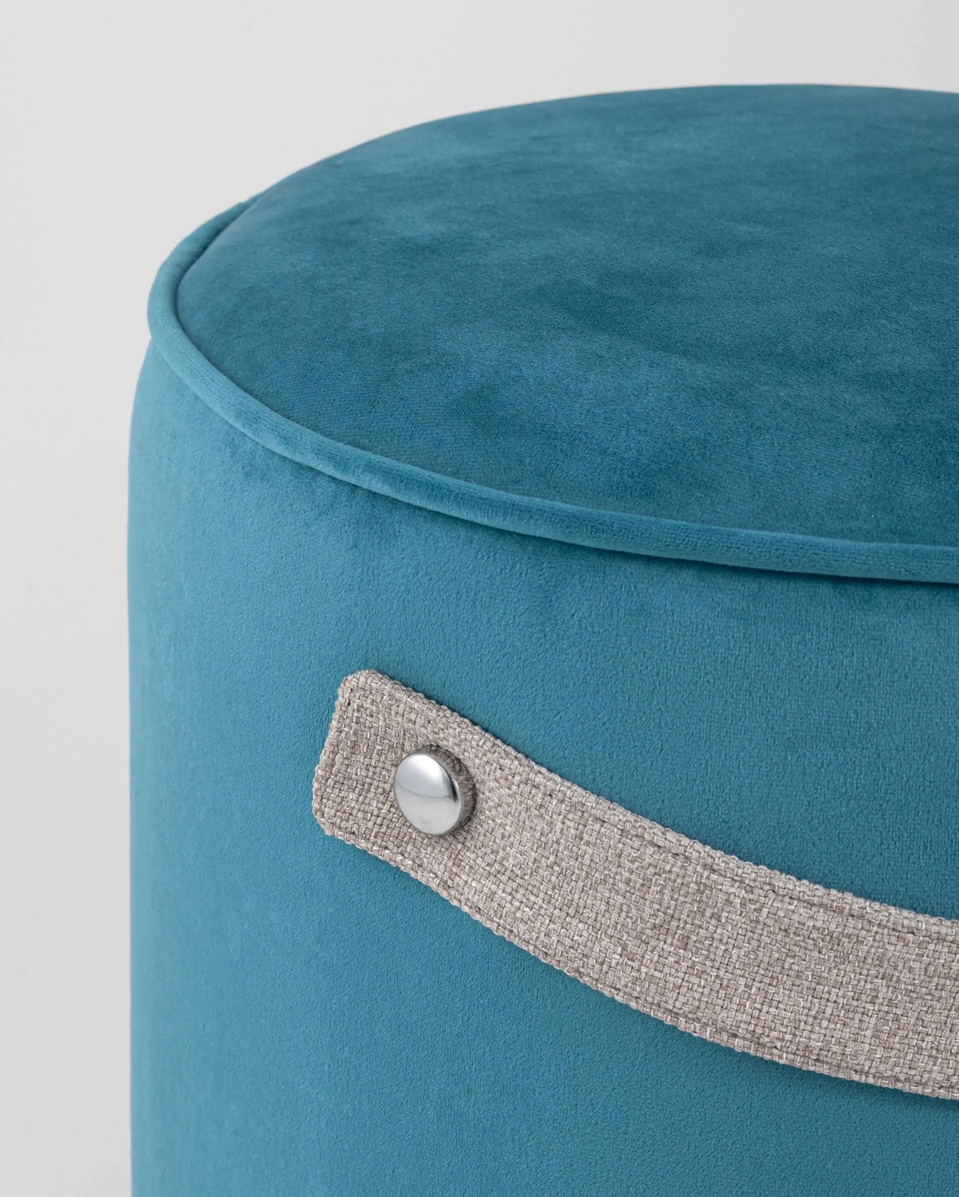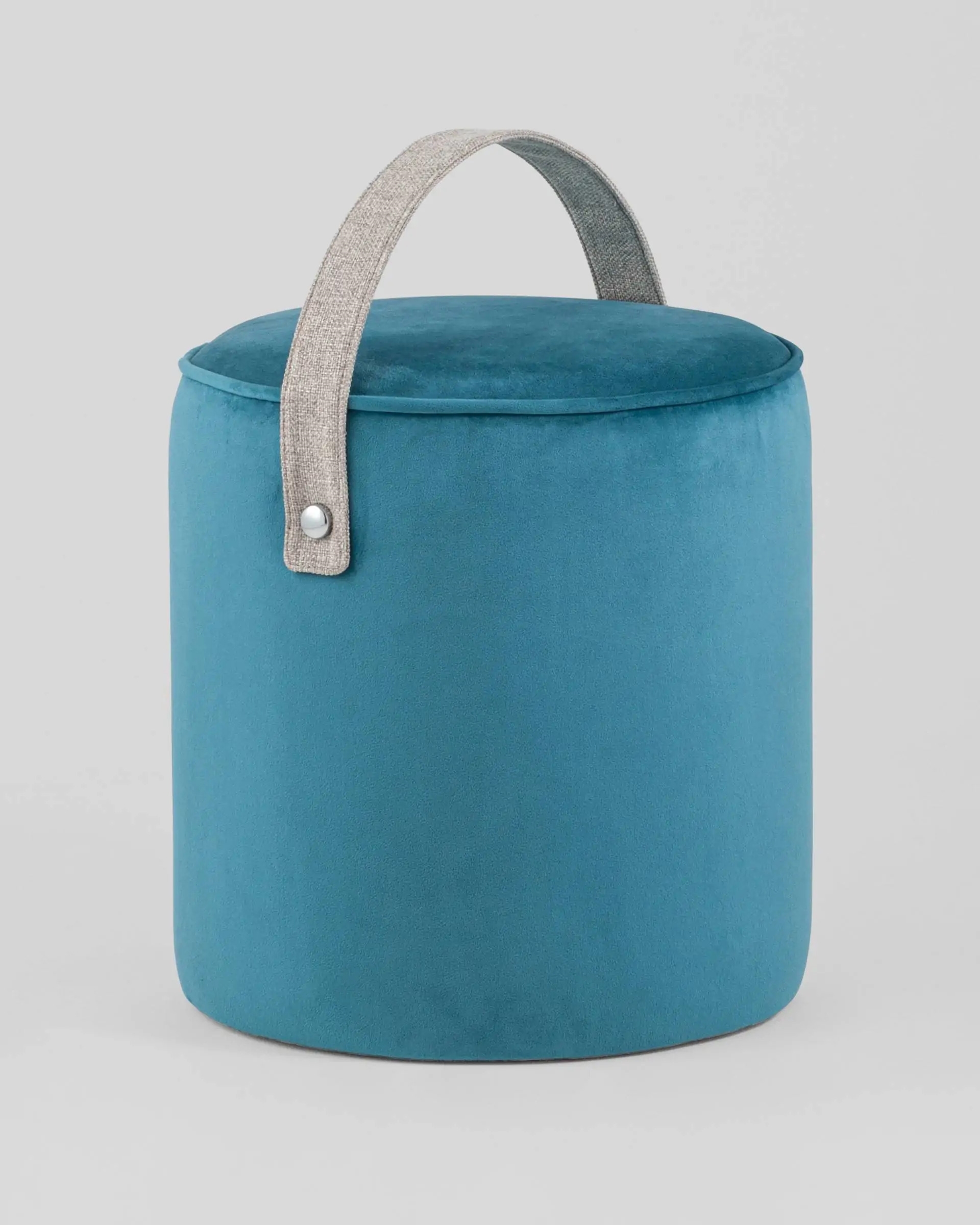 Оригинальный пуф с ручкой. Обивка – мебельный велюр. Материал обладает особой прочностью и износоустойчивостью, приятный на ощупь, эластичный и теплый. Станет прекрасным дополнением прихожей, гостиной или спальни.