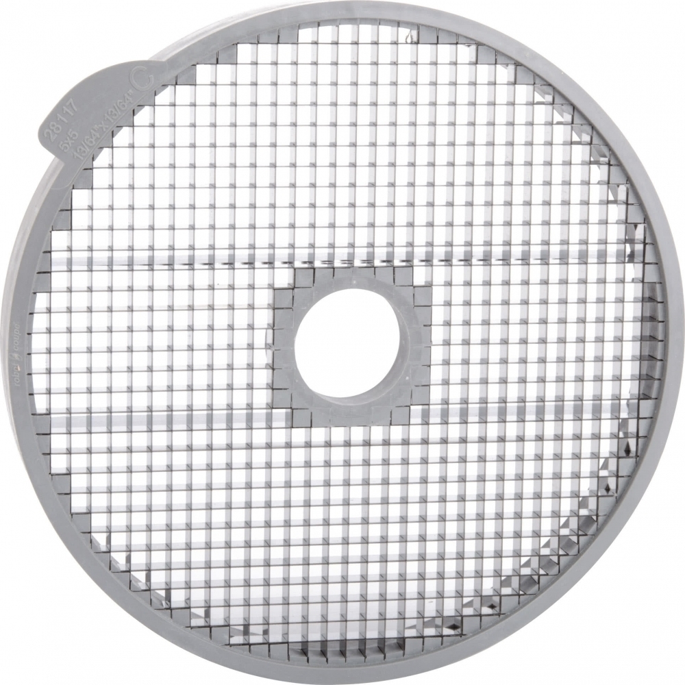 Robot-coupe 28117 представляет собой подрезной диск-решетку для нарезки кубиками. Насадка подходит для совместного применения с овощерезками CL50, CL50Ultra, CL52, CL55, CL60, а также кухонными процессорами R502, R652. Диск рассчитан на применение в условиях высоких нагрузок, подходит для оснащения пунктов общественного питания, торговых точек.