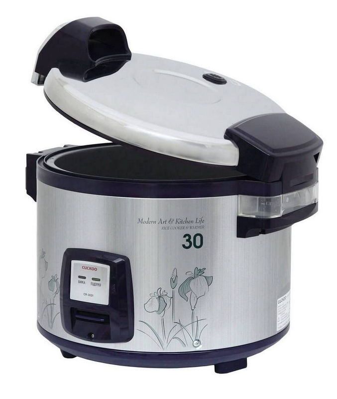 Рисоварка CuckooCR-3021изготовлена южнокорейскими производителями для приготовления большого объема риса и разнообразных каш из других видов круп, а также для сохранения данной продукции в разогретом состоянии. Модель может эксплуатироваться в различных суши-барах, в ресторанах и других организациях торговли и быстрого питания.