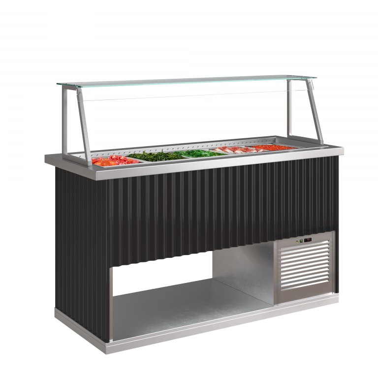Охлаждаемый салат-бар серии Dance food – элемент линии раздачи, предназначенный для хранения ингредиентов салата. Возможно изготовление салат-бар по вашим размерам. Исполнение: с ванной для гастроёмкостей.