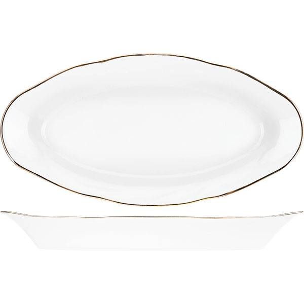 Блюдо Добрушский фарфоровый завод «Голубка» селедочница; L25, B12,5см, фарфор, белый, золотой