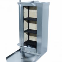 GRILL MASTER СУ/3 угольный представляет собой гриль-шаурму, предназначенную для оснащения пунктов общественного питания, торговых точек. Он предназначен для приготовления различных сортов мяса на вертеле. Модель работает на углях. Корпус выполнен из прочной нержавеющей стали, в конструкции предусмотрены чугунные колосники. Огнеупорный кирпич использовался для отделки боковых стенок, свод и пода.