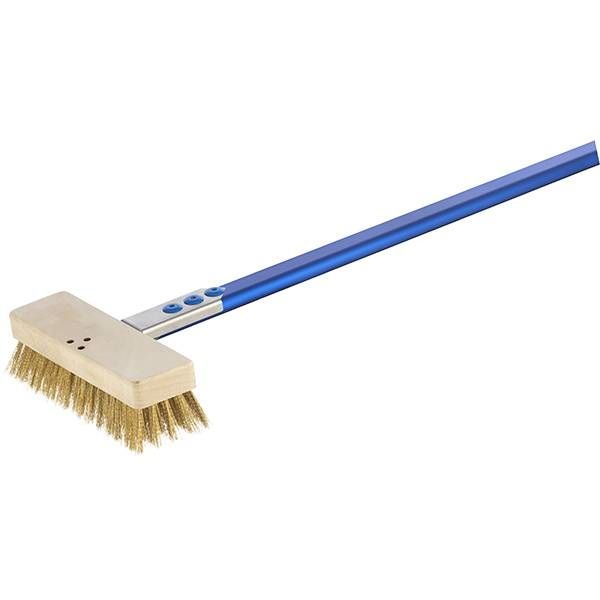 Щетка для печей Gi.Metal AC-SP3/120используется на предприятиях пищевой промышленности, общественного питания и торговли для очистки камеры электрической печи для пиццы от остатков продукта, золы и других загрязнений. Модель оснащена длинной рукояткой с отверстием для подвешивания. Рукоятка и заклепки выполнены из анодированного алюминия с покрытием лазурно-голубого цвета, головка – из дерева, щетина – из латуни, скребок – из нержавеющей стали.