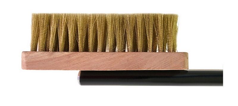 Щетина щетки выполнена из меди. Длинная ручка и вертикальное расположение рабочей части позволяют добраться даже до самых труднодоступных мест в камере. Общая длина изделия составляет 910 мм. Корпус рабочей части изготовлен из древесины. Прочная рукоятка произведена из алюминия и окрашена в черный цвет. Размеры щетки без рукоятки 160х50х40 мм.