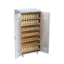 Шкаф закрытый для хлеба ШЗХЛ с распашными дверками, с замком и перфорацией. Материал: оцинкованная сталь (дно и задняя стенка), нержавеющая сталь AISI 430 0,8 мм (остальные элементы). Дополнительно вы можете приобрести деревянные лотки 740х450 мм для хлеба ЛХ-740.450-02 (стоимость 3440 р.).