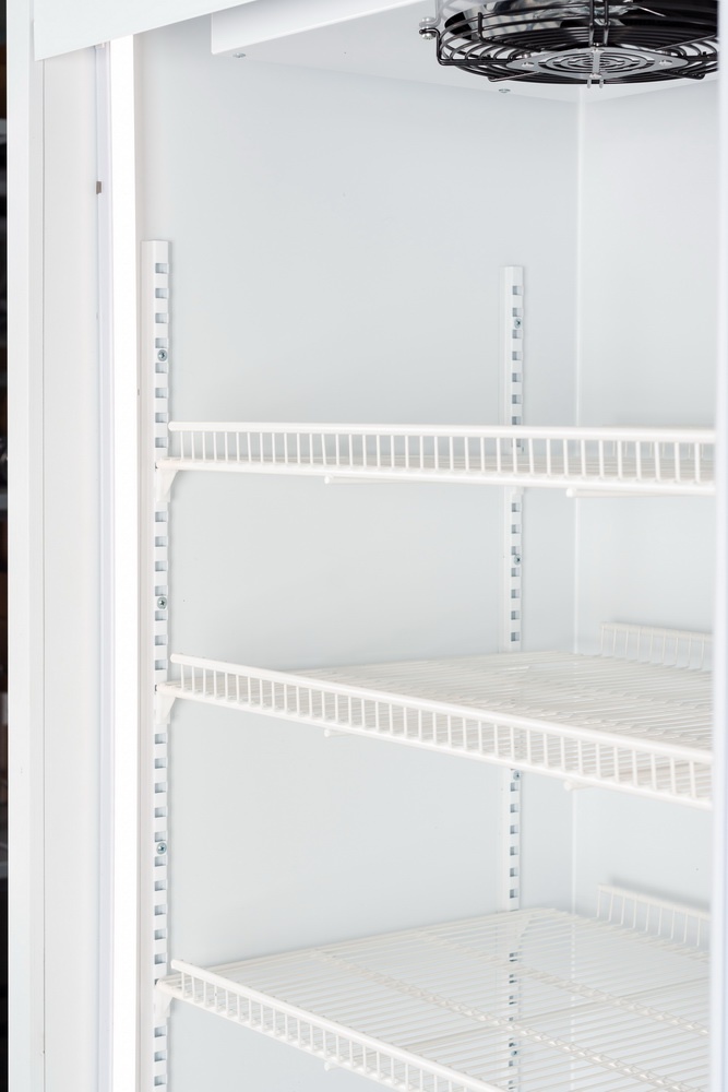 Холодильный шкаф ШХ-1000с двумя глухими металлическими дверками предназначен для продуктов, требующих хранения при температуре от 0 до +5°C (напитки, молочные продукты, овощи, фрукты, кондитерские изделия). Модель подходит для использования в заведениях общественного питания, пищевых производственных предприятиях, в подсобных и складских помещениях. Динамический тип охлаждения означает наличие вентиляторов, обеспечивающих быстрое и равномерное распределение холодного воздуха по всему внутреннему объему. В комплект входят полки для оптимального распределения продукции. Производитель — компания ООО ПК «Продмаш», г. Самара (ТМ «Север»).