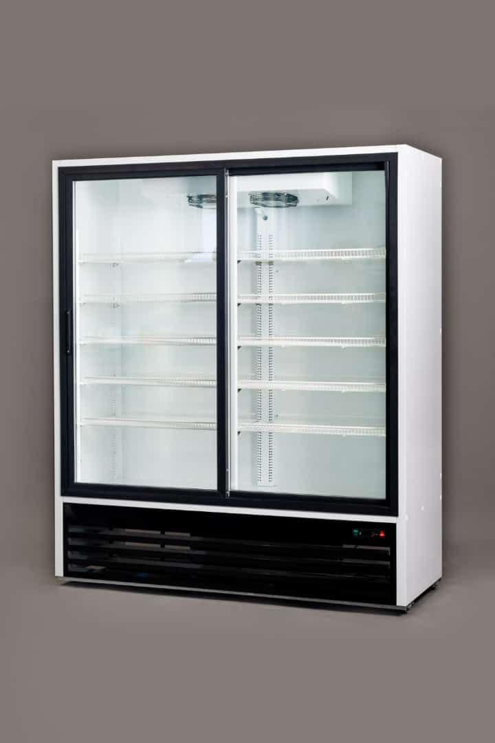 Холодильный шкаф ШХ-1000 с двумя стеклянными раздвижными дверками предназначен для демонстрации и продажи продуктов, требующих хранения в температурных условиях от -5 до +5°C (включая мясные и рыбные деликатесы, икру, пресервы). Модель подходит для эксплуатации на объектах торговли, в гипермаркетах, на профессиональной кухне, в условиях пищевого производства. Динамический тип охлаждения означает наличие вентиляторов, обеспечивающих быстрое и равномерное распределение холодного воздуха по всему внутреннему объему. Комплектация включает в себя полки для оптимальной выкладки продукции. Производитель — компания ООО ПК «Продмаш», г. Самара (ТМ «Север»).