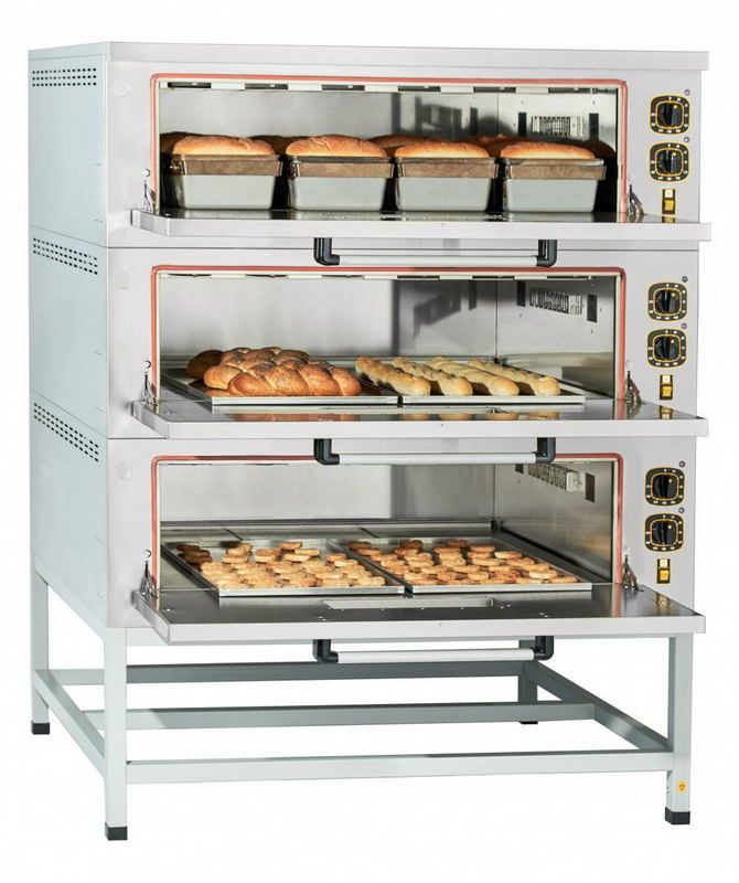 - 3 пекарские камеры, внутренний размер каждой 1035x800x280мм;