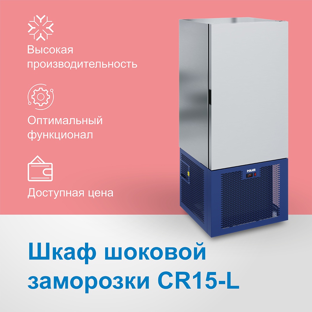 Шкаф шоковой заморозки Polair CR15-Lвходит в комплект необходимого оборудования для любого заведения общественного питания, ориентированного на широкий ассортимент блюд и высокое качество их приготовления. Преимущество технологии шоковой заморозки — в сохранении внешнего вида, полезных свойств и вкусовых качеств продукта. Для интентсивной заморозки подходят как полуфабрикаты из мяса, рыбы, овощей и изделия из теста, так и готовые блюда. Использование шоковой заморозки позволяет снизить себестоимость блюд и сократить время на их приготовление.