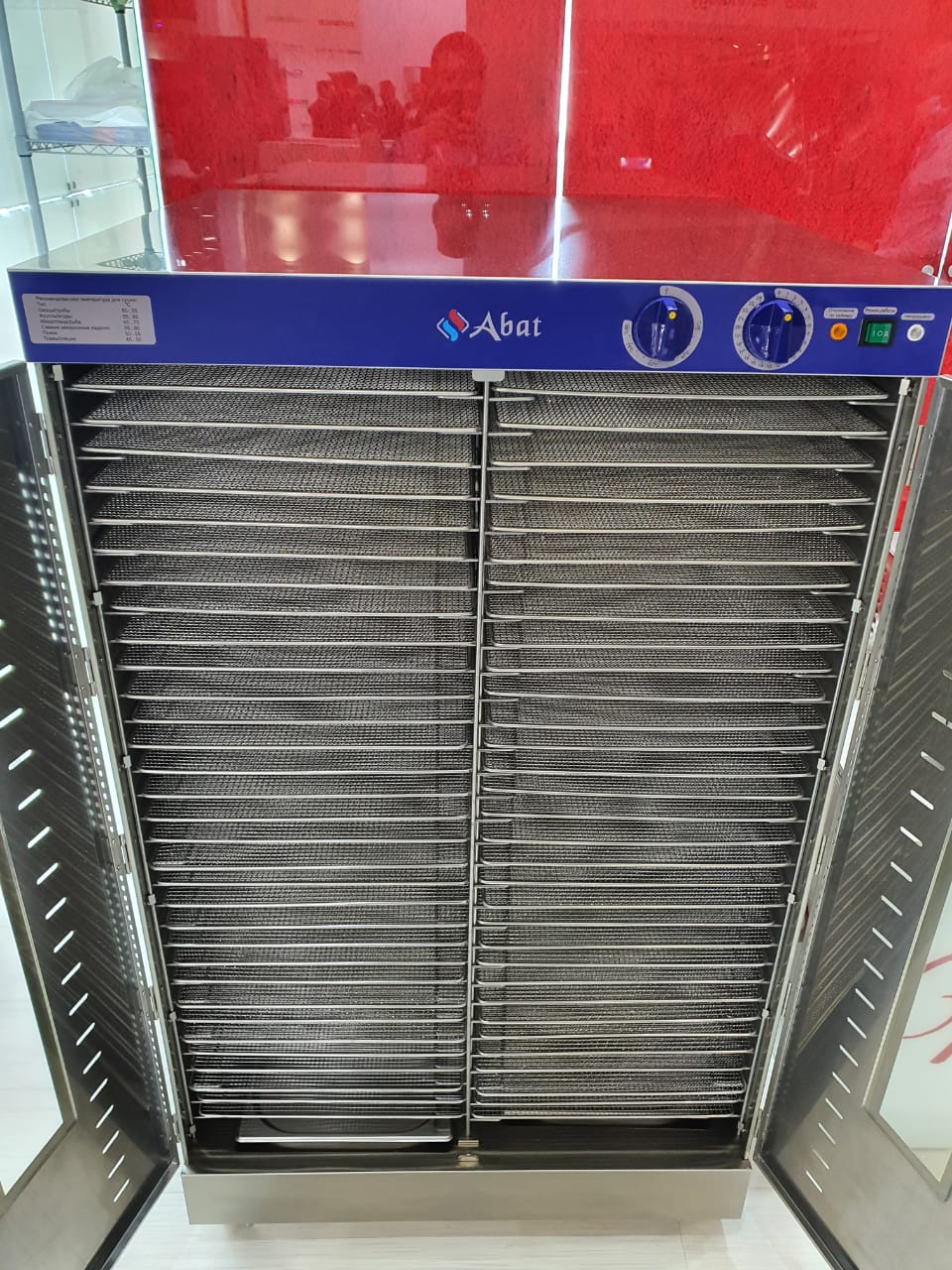 Шкаф сушильныйAbat ШС-32-2В-01позволяет в промышленных объемах сушить травы, зелень, фрукты, овощи, ягоды, орехи, грибы, макаронные изделия, а также готовить пастилу, йогурт, вяленое мясо и рыбу, основы для сыроедческих пицц, тортов, пирогов и другие сыроедческие блюда (фруктовые чипсы, хлебцы, козинаки, конфеты, печенье и пирожные) на предприятиях общественного питания и торговли, а также на фермах и сельскохозяйственных предприятиях.