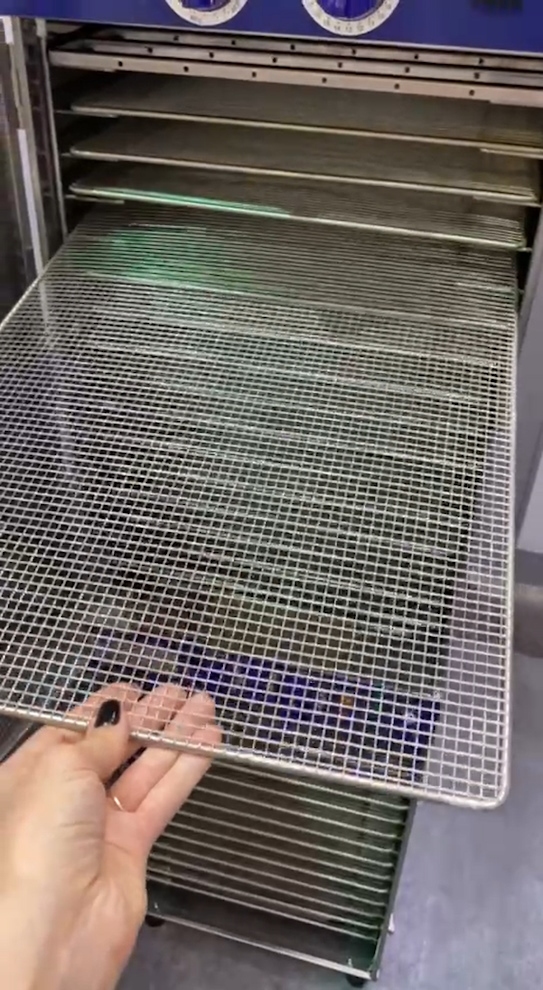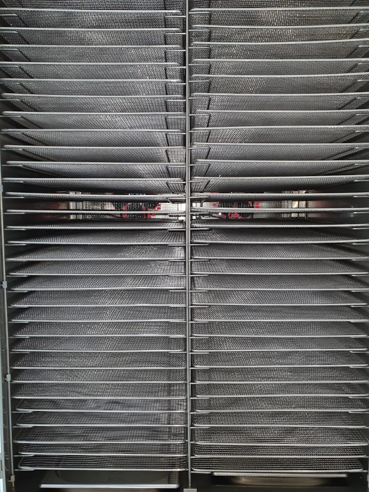 В комплект поставки входят 64 решётки EN 1/1 (600х400 мм) и 2 ёмкости для сбора воды. Материал решёток – нержавеющая сталь AISI 304 толщиной 0,7 мм, шаг сетки – 6×6 мм. Не имеют бортиков.