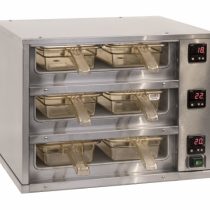 ROBOLABS МН-3-2М-01 представляет собой тепловой шкаф, предназначенный для оснащения торговых точек, пунктов общественного питания. Он предназначен для поддержания в горячем виде готовых блюд (мясных, рыбных, соусов, пюре, пасты, бургеров и так далее). В конструкции предусмотрено 3 рабочих отсека, расположенных в колонну. Каждый отсек рассчитан на 2 гастрономические емкости формата FN1/3 глубиной 65 мм. Корпус выполнен из нержавеющей стали.
