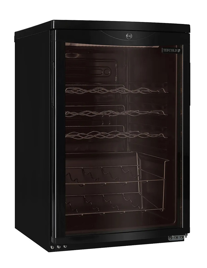 Винный шкаф TEFCOLD SC85 рассчитан на 22 бутылки, оснащен распашной стеклянной дверью и светодиодной внутренней подсветкой.