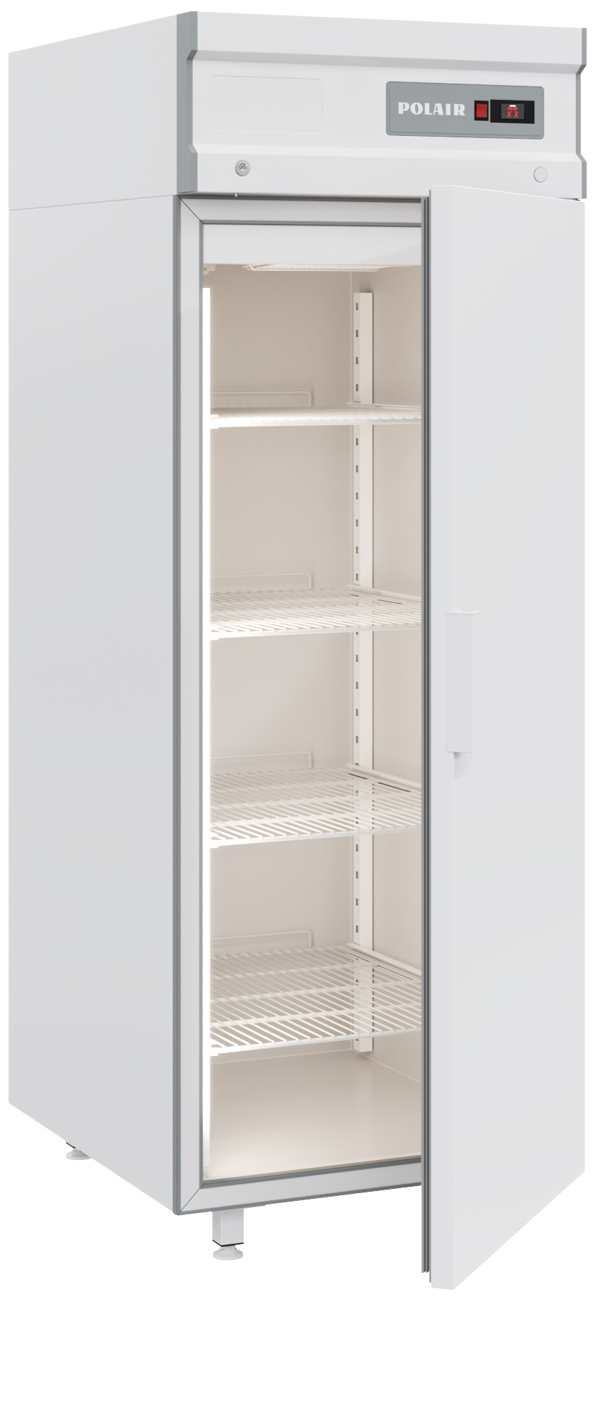 В качестве хладагента вхолодильном шкафу Polair CV105-Sиспользуется пропан R290, который является более безопасным для окружающей среды и позволяет сэкономить примерно 50% электроэнергии в сравнении с предыжущим хладагентом R134a. В комплект входят 4 решетчатые полки, светодиодная подсветка (включается автоматически при открытии двери), замок. Шкаф соответствует стандарту GN — вместо полок возможно использование гастроемкостей. Дополнительные опции для этой модели: колесные опоры, педаль для открывания двери.